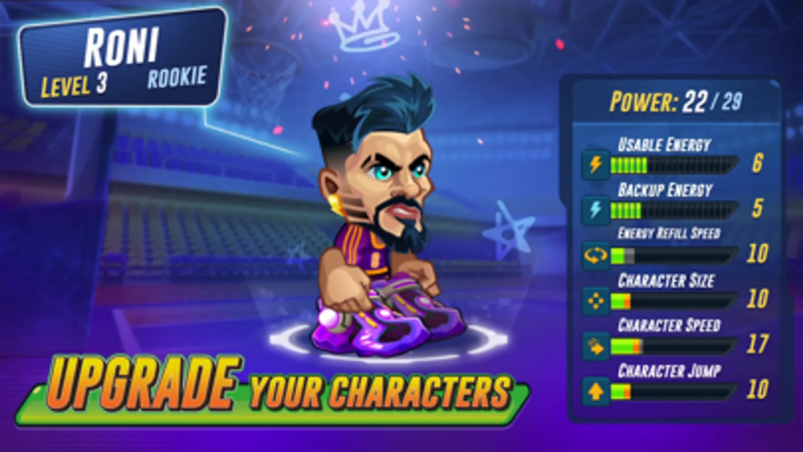 Go for slam dunks, fire off long 3-point shots, use superpowers, win matches and earn cups! Dash and steal the ball from your opponent in head-to-head matches! Each point you score gets you closer to filling the ball basket and getting valuable rewards!