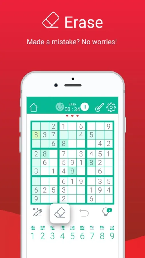- Colour themes. Choose one of three appearances to design your own sudoku!