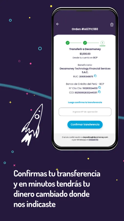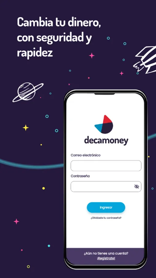 Decamoney es una plataforma digital de servicios financieros, ahorras tiempo y dinero haciendo tus operaciones de cambio con nosotros, opera con seguridad desde donde te encuentres.