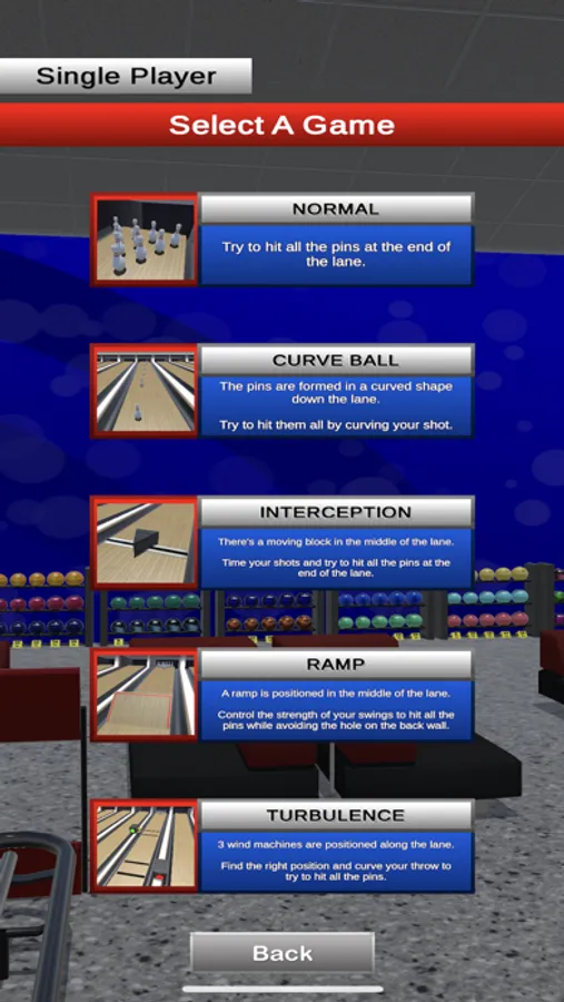 - Ramp — your ball goes airborne off a ramp, landing just before the pins.