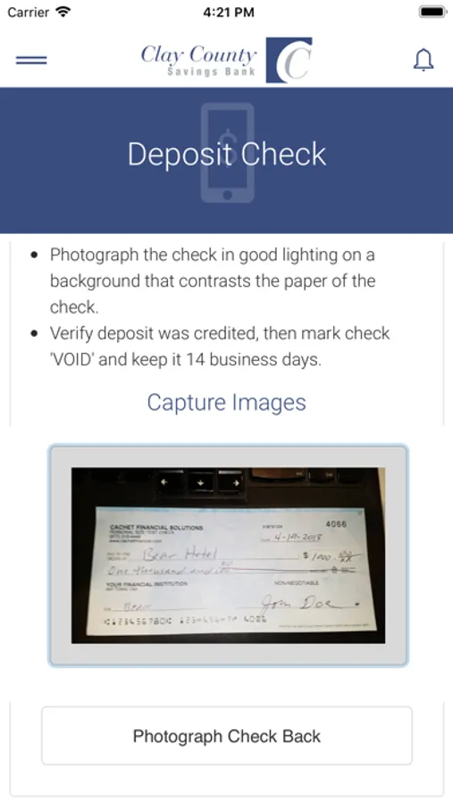 Securely access your Clay County Savings Bank account from your Apple device any time you are connected to the internet. Sign in conveniently with your online banking credentials or sign up for access.