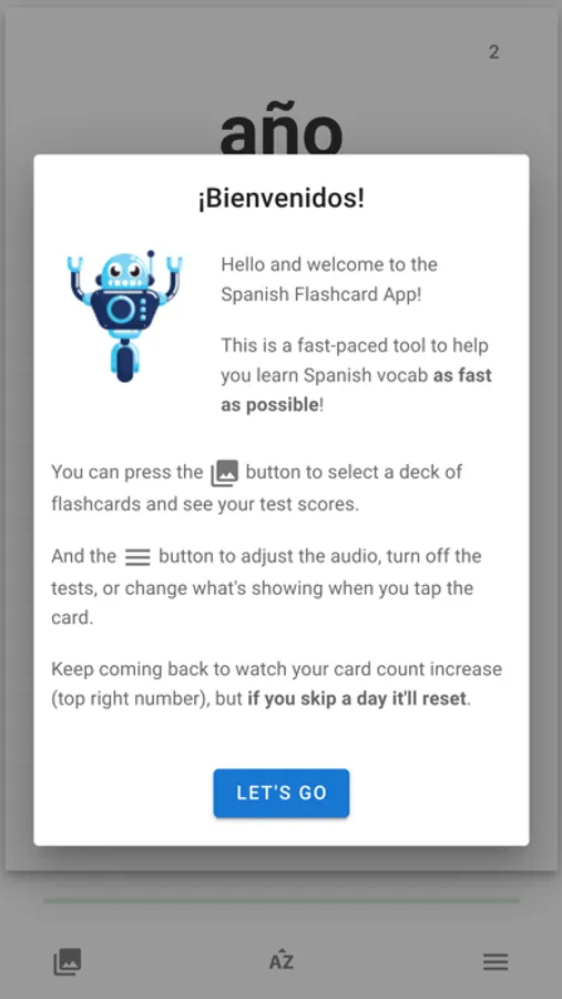 The Robot Language Spanish Flashcards App uses audio and visual representations of the vocab word in an effort to help people learn foreign language vocabulary better.