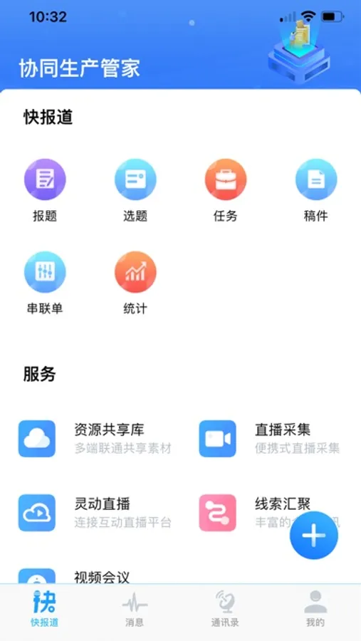 快报道平台是基于互联网,面向融媒中心,提供线索汇聚、报题收集、选题策划、任务协同、采编协作、资源管理、指挥调度、直播采集的一体化工作平台。支持联动菱云内容管理平台、微信、微博、网易号、百家号等多个新媒体平台;