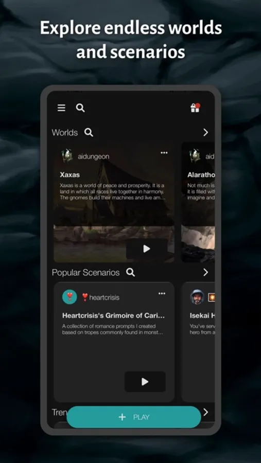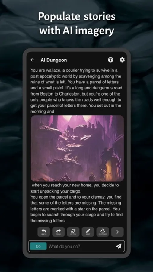 AI Dungeon is the first ever artificially intelligent open-ended text-based role playing game (rpg) adventure game. It uses cutting edge artificial intelligence technology to generate infinite content on the fly, giving you a completely unique and dynamic experience every time you play. AI Dungeon is also the first app to use the Stable Diffusion in-app for image generation (similar to other AI image generators like Midjourney and Dall-e 2).