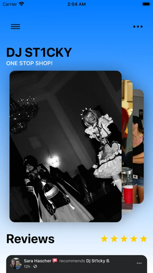 This app was created for DjSt1ckyB to make it easier to book and check for the latest updates and events. Through the app you can request a booking, check some events pictures and much more.