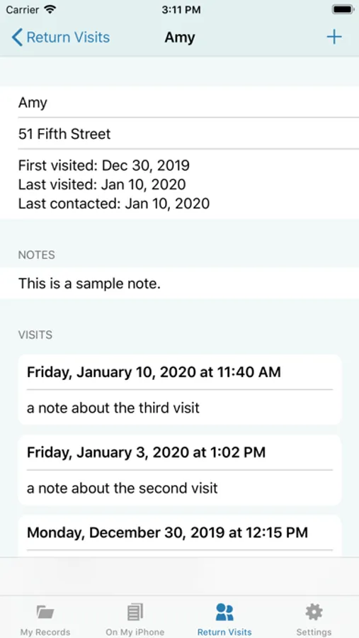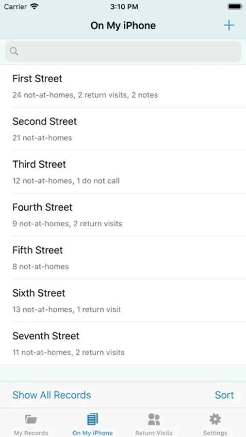 - View your list of not-at-home's or return visits, export your record as a PDF, or email it as text.