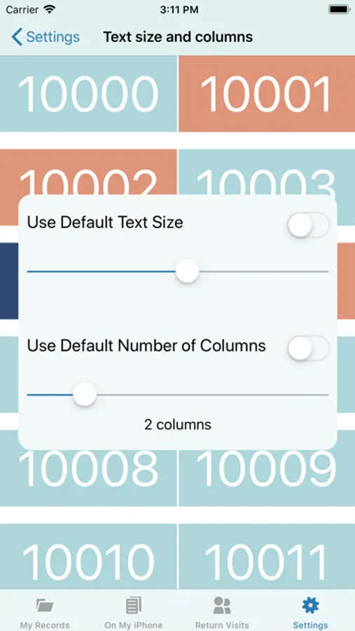 - Adjust the text size of numbers in the grid, and adjust the number of columns.