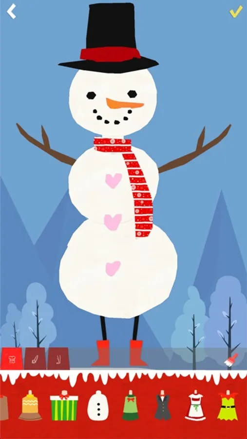 You can play games with your characters. This app contains three mini games: Hide-and-seek, snowball fights, music rhythm dancing game.