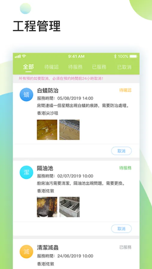 Users can use this app to request cleaning and pest control services and help. At the same time, you can also understand the progress of the project through the app. Refer to relevant pictures and reports of the project.