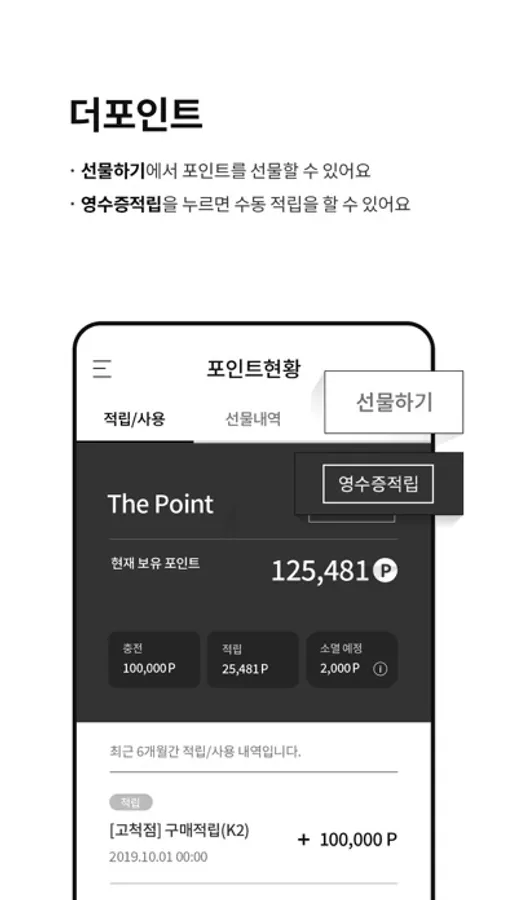 ▶ 포인트를 선물할 수 있고 영수증으로 포인트 적립이 가능해요!