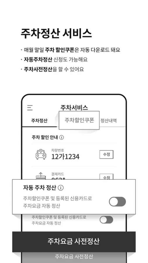▶ 사전정산, 자동정산 등 편리한 주차정산 서비스가 가능해요! 매달 300분 분단위 차감!