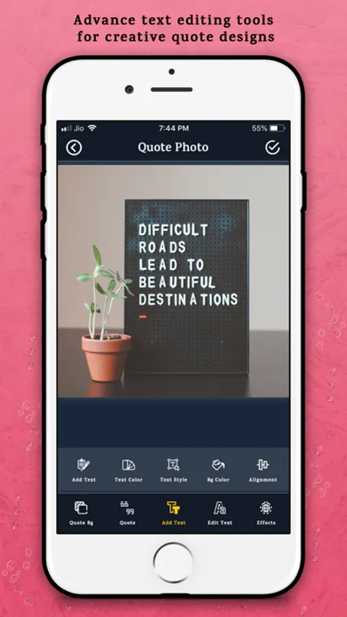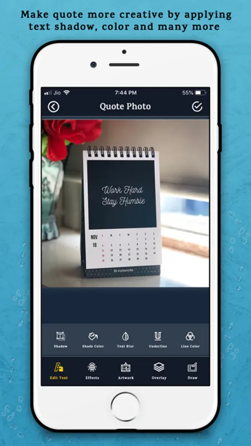 Quote Maker is the perfect app for typographic art and text edit. Quote Maker provides multiple types of editing tools like Colour fill, drawing, shape artwork, photo background effects, blending, masking, image blur, photo filters, typography, set opacity and many more.