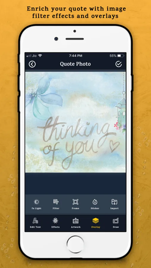 - Choose quotes from app or add quote text on photo