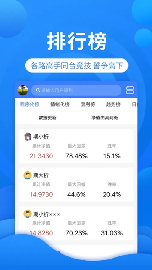 2、期货交易排行榜,让您与各路高手同台竞技;