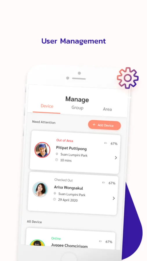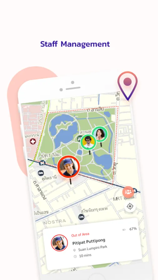 The supervisor whose in charge of the team will be able to see locations of all employees in detail on a real-time and high-accurate map.
