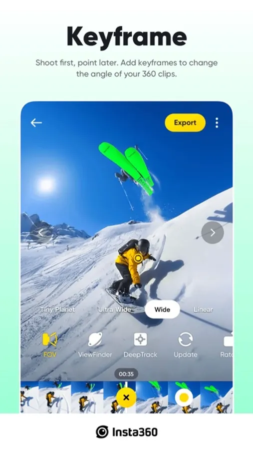 The creative possibilities are endless with easy 360 reframing tools in the Insta360 app. Tap to add a keyframe and change the perspective of your footage.