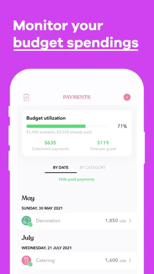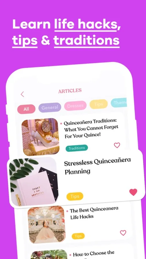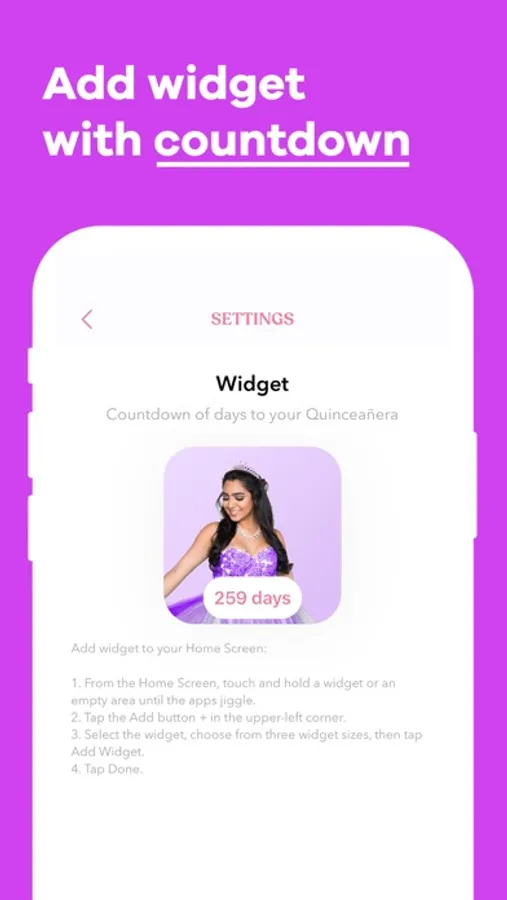 Convenient categorization and a notification system will help to organize your Quinceañera as it was intended.