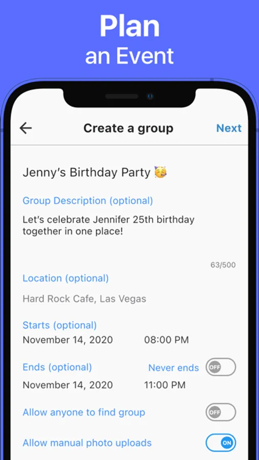 Control who gets to see your photos even before you take them. Create private groups, photo albums, or events and invite members with invite code, QR code, or through your contacts.