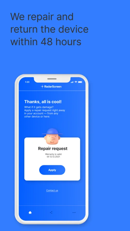 RadarScreen is an extended warranty for smartphone screen protection. Activate the service and don’t worry about breaking or damaging the screen. All repair proubles will handle RADAR company.