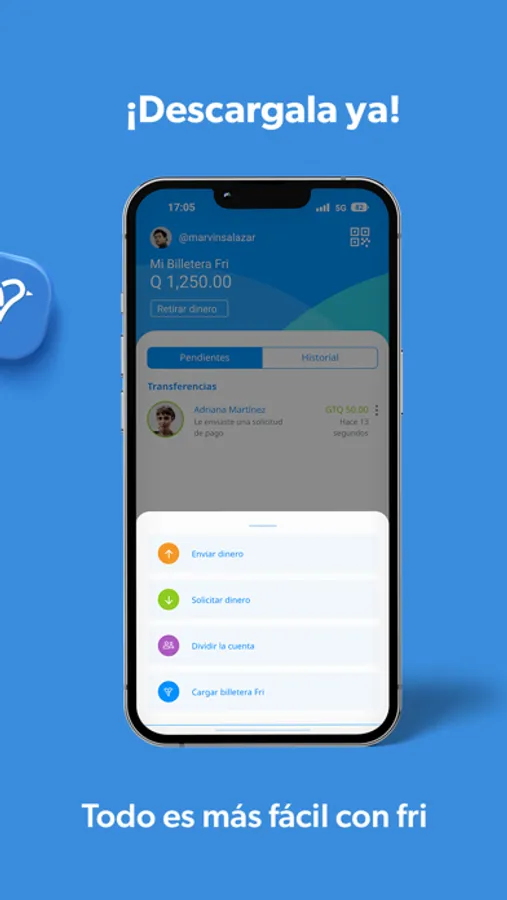 Aplicación móvil, a través de la cual los usuarios que hayan vinculado sus cuentas bancarias en Instituciones Financieras Afiliadas, pueden enviar y recibir transferencias de dinero y solicitar transferencias, a sus familiares y amigos de forma rapida, facil y segura.