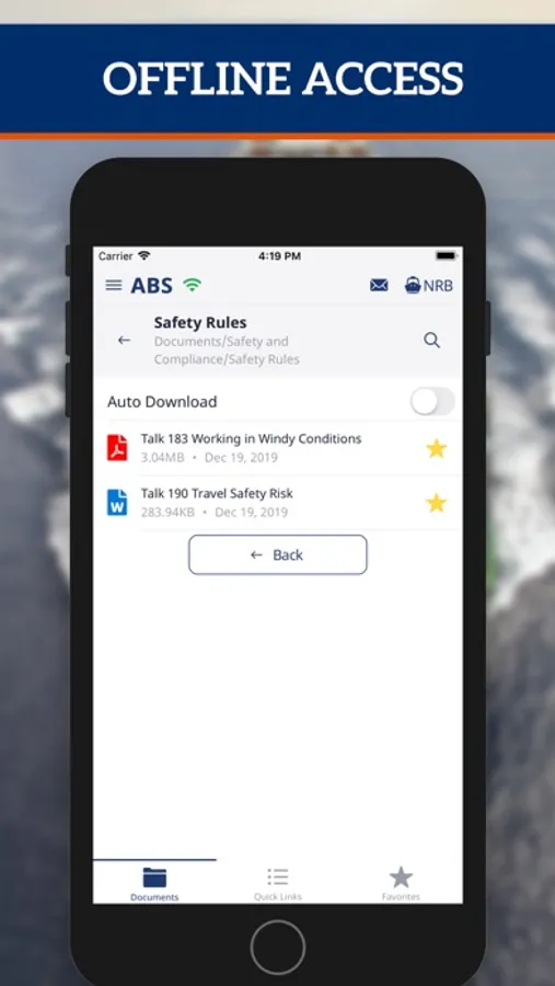 Access your company documents with ease using the ABS Nautical Systems Docs mobile app. The App enables onboard and office mobile users quick and easy access to company-controlled documents when away from their computer.