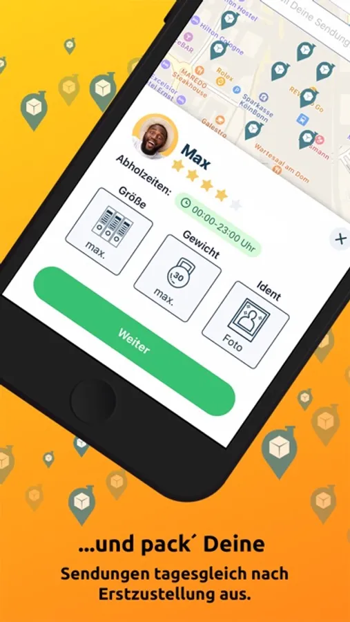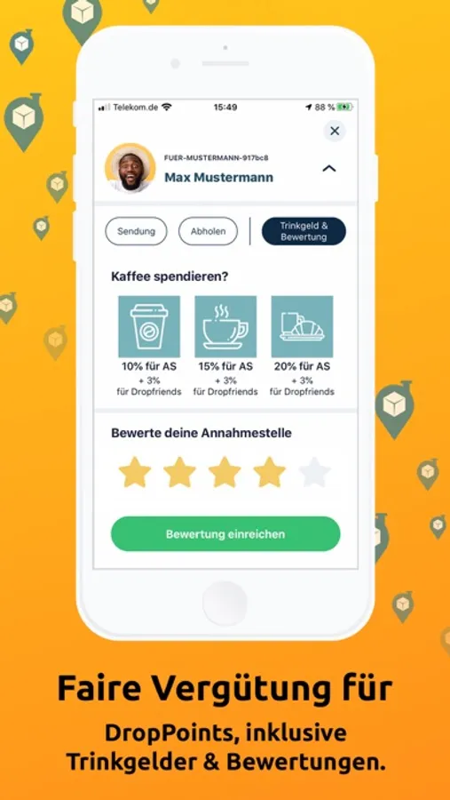 Lade die DropFriends-App herunter und nimm Pakete für Deine Community an, die zum Zustellungszeitpunkt z.B. ans Büro oder Hotel gebunden ist.