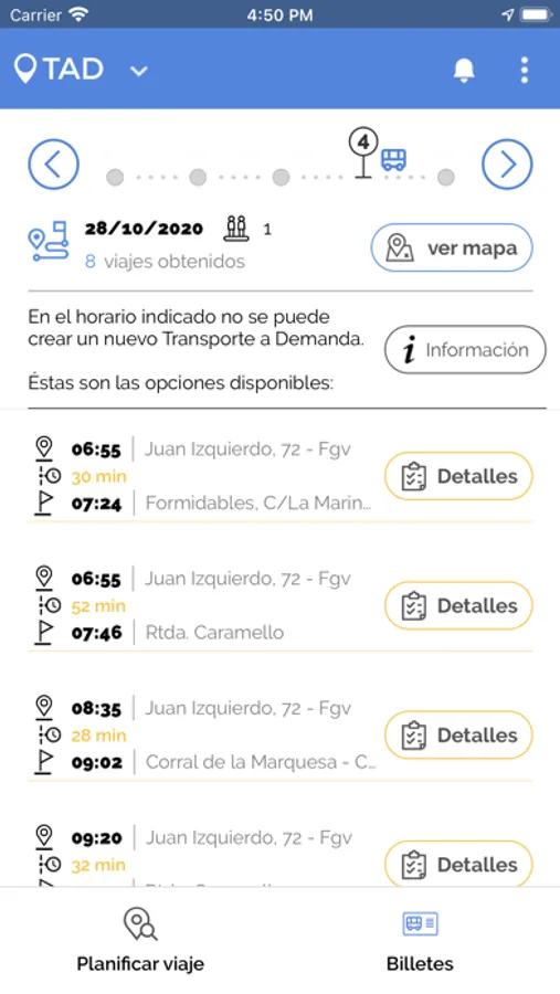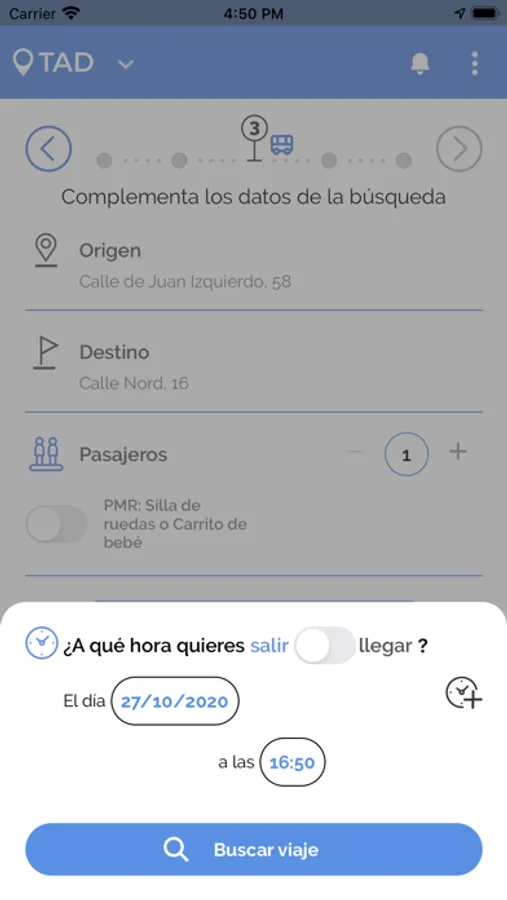 TAD se trata de una aplicación de transporte que agrupa pasajeros en un mismo vehículo y diseña rutas basadas en sus necesidades. Mediante una petición de viaje realizada por el usuario, TAD calcula de manera flexible y eficiente el trayecto adecuado para todos los viajeros.