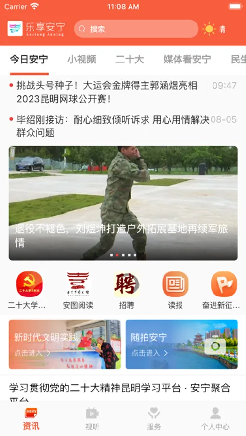 乐享安宁是中共安宁市委宣传部、安宁市融媒体中心打造的集资讯、视听、服务为一体的新媒体平台,平台整合市域报纸、电视、广播及微信微博等媒体资源,具备全媒体新闻发布、党建服务、政务服务、便民服务等功能。