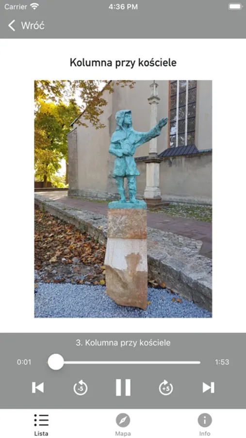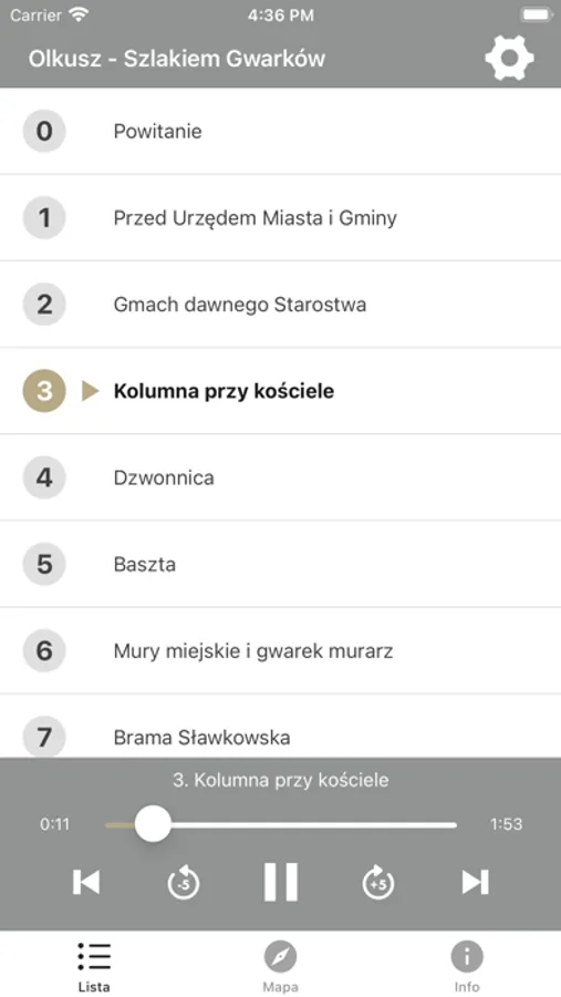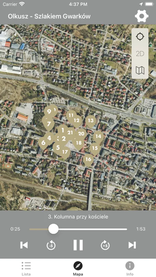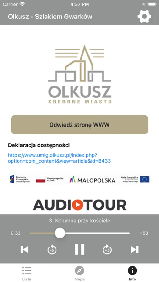 Aplikacja jest formą audioprzewodnika pozwalającego na zwiedzanie Olkusza za pomocą urządzeń mobilnych.