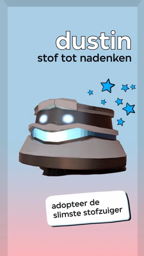 Hoofdpersonage in het verhaal is de slimme stofzuiger Dustin die zich niet goed voelt in zijn rol en zoekt naar manieren om zijn lot te beïnvloeden. Het verhaal speelt zich af in een chat interface enf in augmented reality (AR). In deze scènes zie je Dustin in jouw eigen huiskamer of keuken verschijnen.