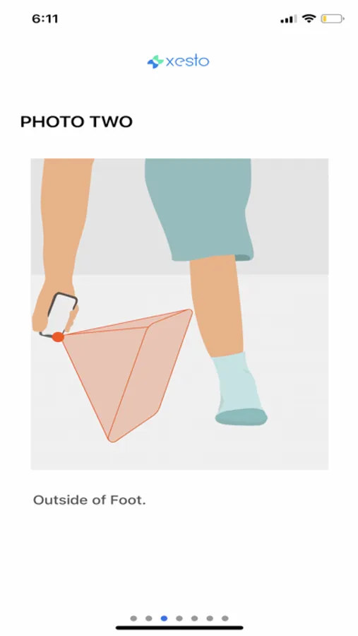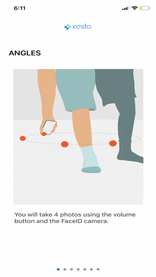 Using the FaceID camera, users will take 5 photos of each of their feet. Xesto Fit'’s proprietary software will process and return accurate 3D models of the feet, along with the key dimensions. Users can interact with the 3D models of their feet in a photorealistic view or as point clouds.