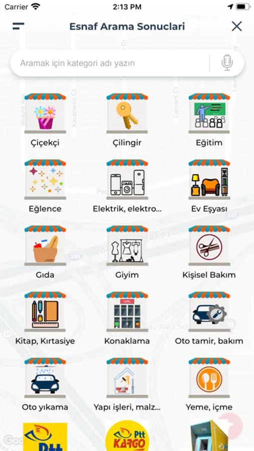 Yakınınızdaki esnaf ve sanatkar işletmelerine harita üzerinden ulaşabilirsiniz. Bakkal, lokanta, kuaför, çiçekçi gibi bir çok kategoride, aradığınız esnaf işletmesinin iletişim ve adres bilgilerine ulaşabilirsiniz.