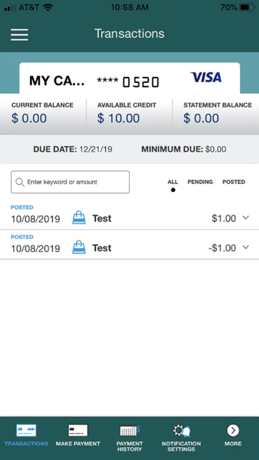 • View recent and pending transactions.