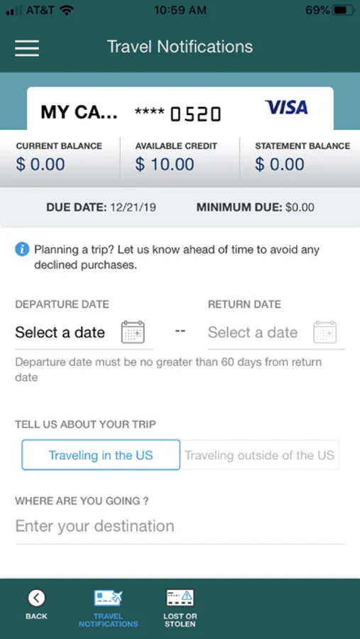 • Set travel notifications.