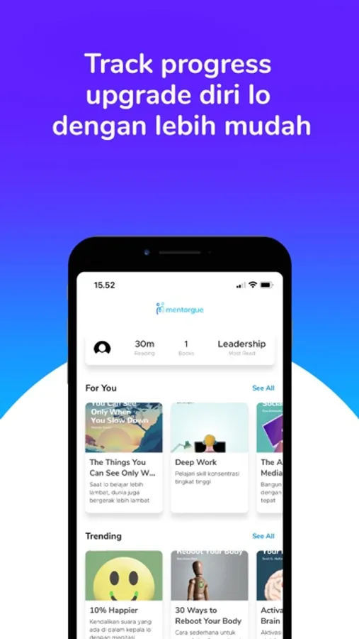 MentorGue memberikan semua buku dalam bentuk suara Bahasa Indonesia, yang sudah jelas teman-teman pembelajar tidak akan pernah bosan untuk mendengarkan-nya setiap hari.