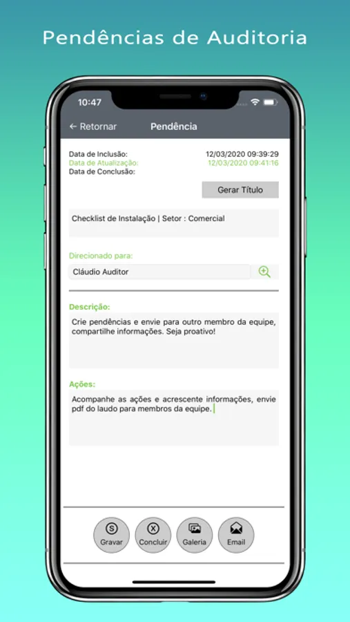 Fazer auditorias, vistorias, preencher checklists, controle de qualidade e emitir laudos. Tudo ficou muito fácil com o Auditoria Móvel.