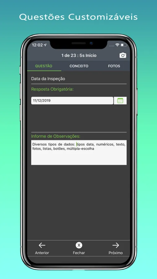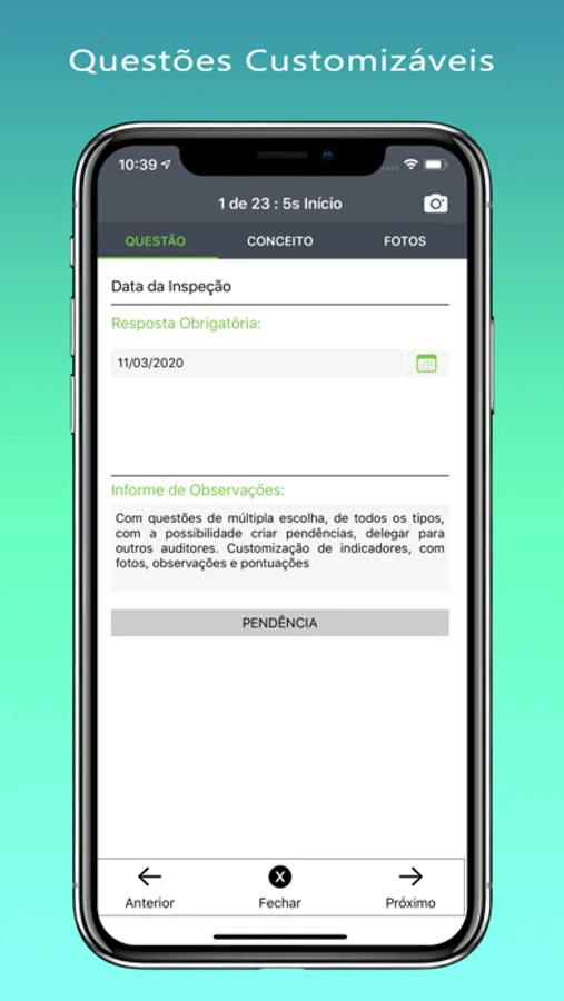 Construa seu checklist eletrônico e faça o preenchimento através de smartphones e tablets.