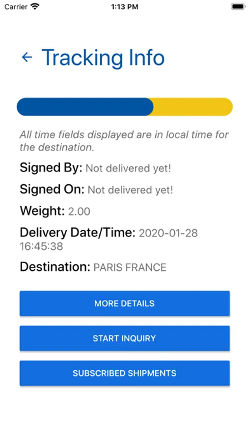The application allows clients to create shipments. By entering new details or selecting preexisting data, clients can control where their goods are received and delivered. This app also grants them the ability to receive quotes, gaining a more detailed view of the costs before submitting a shipment. Furthermore, clients can track existing shipments, see the details of their shipments, submit an inquiry regarding a shipment, and finally subscribe to a shipment, to receive notifications about its status.