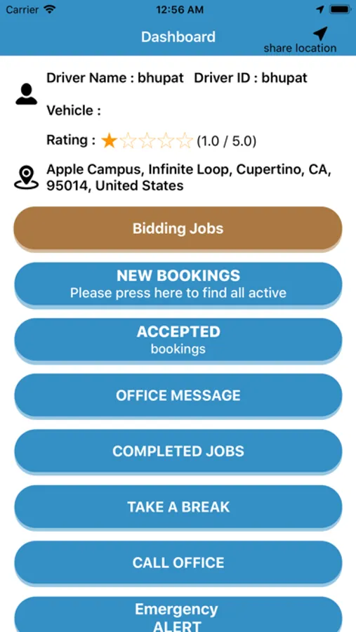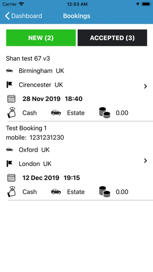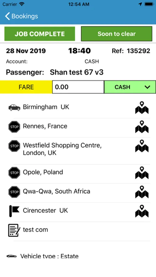 Operators and drivers can check logs of completed jobs and see each times and location on where the driver has picked up and dropped off.