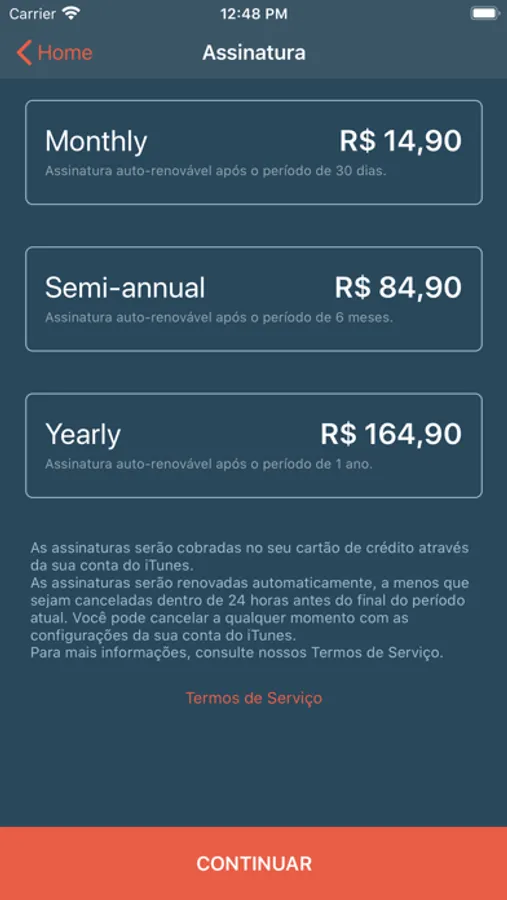 As assinaturas serão renovadas automaticamente, a menos que sejam canceladas dentro de 24 horas antes do final do período atual. Você pode cancelar a qualquer momento com as configurações da sua conta do iTunes.