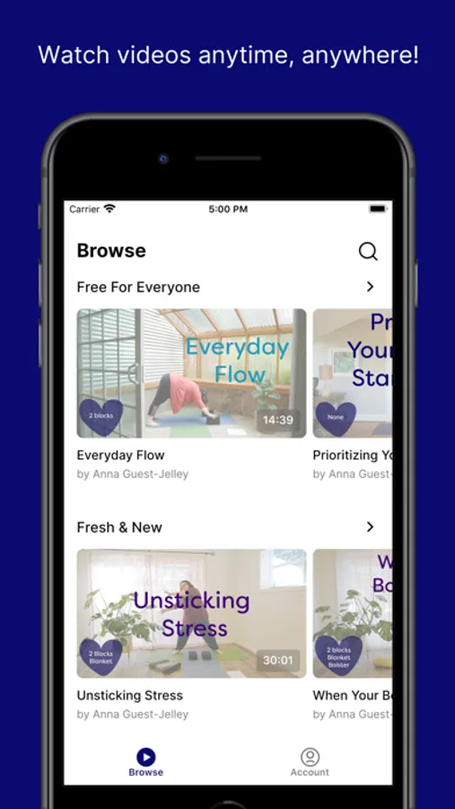 Just like there’s no one way to do a yoga pose, there’s also no one way to have a yoga practice. You get to decide on any given day how long it is (our videos range from 5- to 60-minutes in length), where you do it (hello, living room), and what you do (we have loads of choices for that!).