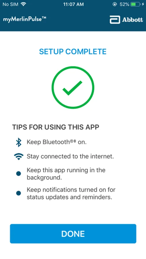 The App uses an internet connection through a WiFi or cellular network to send information about your implanted heart device to your healthcare provider. Your information is encrypted to ensure the privacy and security of the transmission.