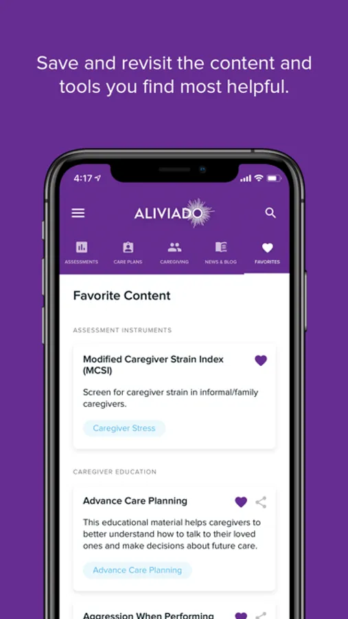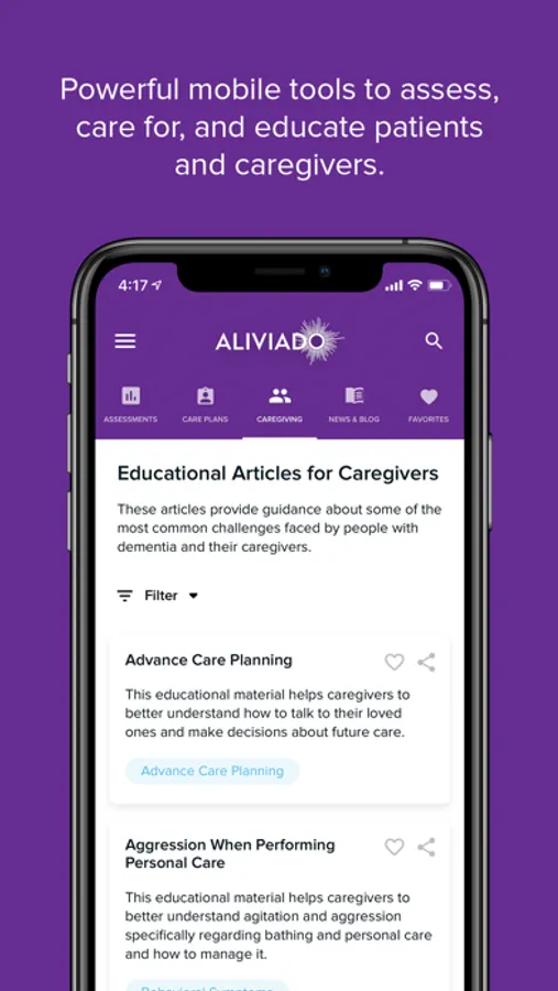 The Aliviado app is focused on helping you to care for persons living with dementia. It contains tools, resources, and other content for both clinicians and caregivers. The Aliviado app comes from Aliviado Health, an arm of the Hartford Institute for Geriatric Nursing at the NYU Rory Meyers College of Nursing focused on helping care organizations and individual clinicians and caregivers provide high quality dementia care through better symptom management, and increasing the quality of life for persons living with dementia and their caregivers.