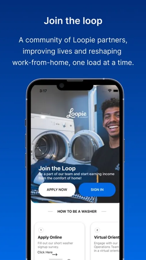 First download the Loopie Partner app! To become a Certified Loopie Partner washer you will need to pass a background check and attend a virtual orientation to learn how to begin your professional washing and folding journey with us! You will also have to pass a folding test!