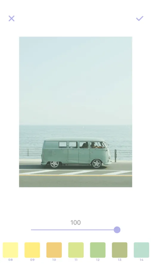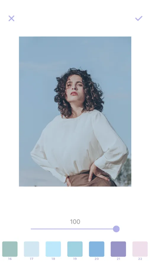 Snap a photo or choose one from your photo library. Then try a variety of color overlay effects and pick one you like. You can adjust the intensity of the photo filter effects to give more subtle & natural effects.