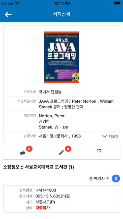 서울교육대학교 도서관 소장자료를 검색하여 소장의 상세 및 도서상태를 확인할 수 있으며 대출중인 자료에 대한 예약서비스를 제공합니다.