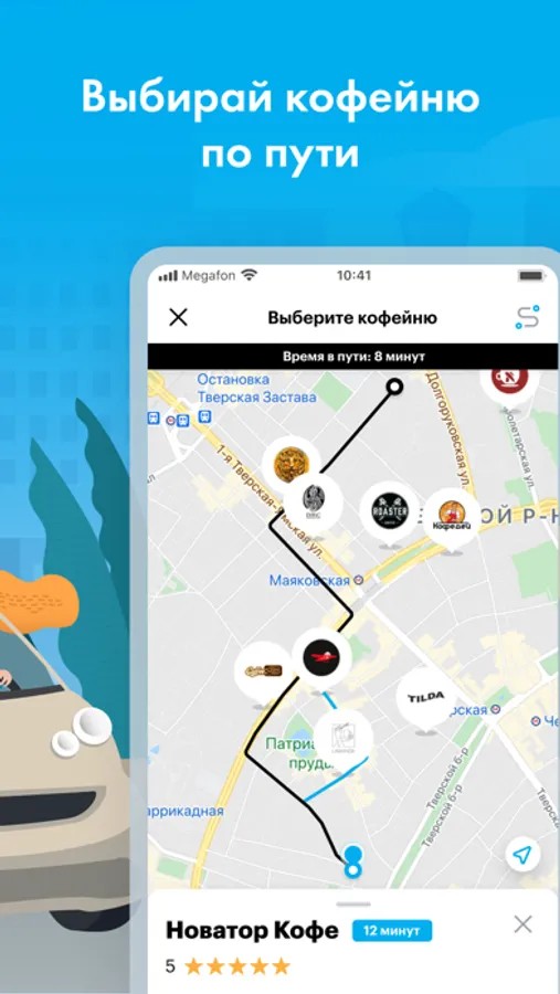 Находите кофейни по пути, делайте заказ заранее и получайте его прямо в руки в момент приближения к кофейне в двух режимах: автомобилист и пешеход.