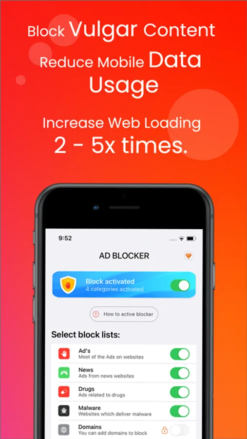 We know you are often worried when your kids want to browse something on your phone. There can be many ads full of vulgarity, that are highly unsuitable for kids. Blocker simply detects such ads and blocks them to protect your kids’ privacy.