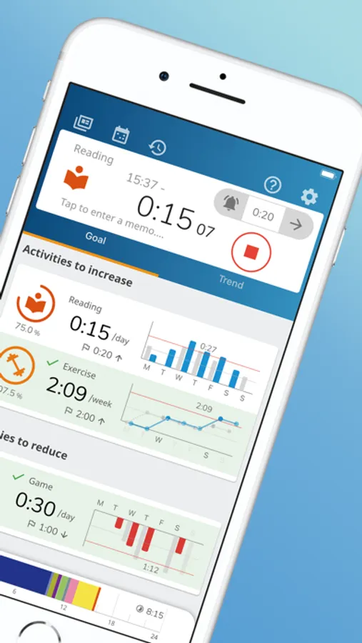 Reports are aggregated on a daily, weekly, monthly, and yearly basis. In addition, the goal function allows you to check the progress toward goals such as "exercise for 2 hours a week" and "game up to 1 hour a day" in real time.
