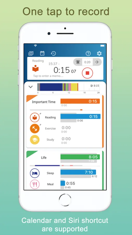 In addition to tapping the icon on the app, let's record what you spent time on by linking with the calendar and using Siri and shortcuts.